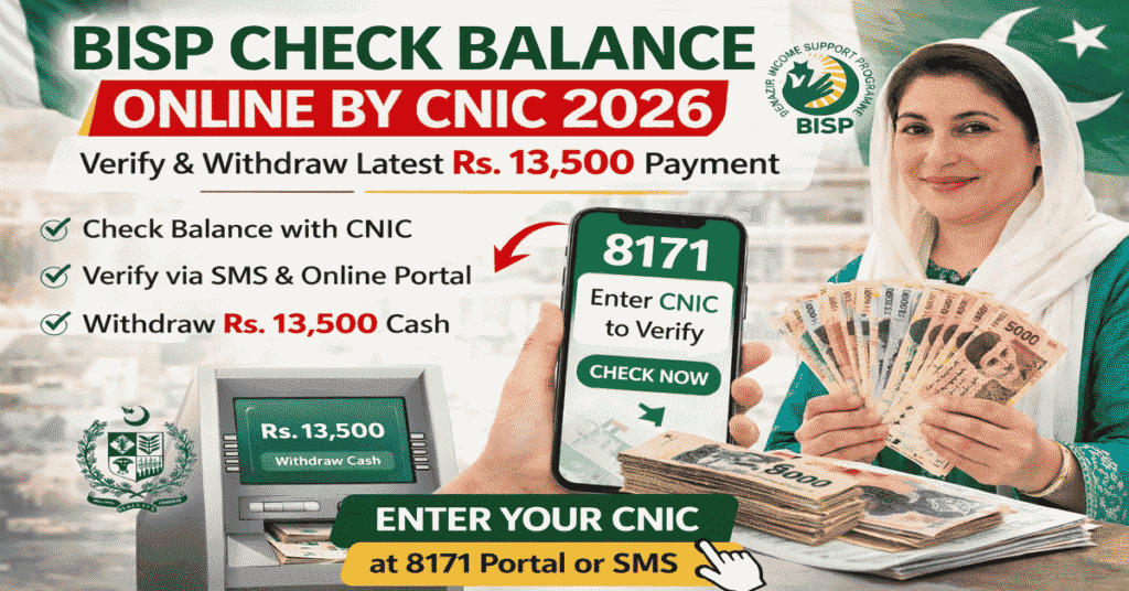 - BISP Check Balance Online by CNIC 2026 – Complete Guide to Withdraw Rs. 13,500 Paymentby Alia KhanThe BISP check balance online by CNIC 2026 service allows eligible families in Pakistan to quickly verify their Benazir Income Support Program (BISP) payment status and withdraw the latest Rs. 13,500 installment without facing unnecessary delays. The Government of Pakistan continues to expand the BISP 8171 program …